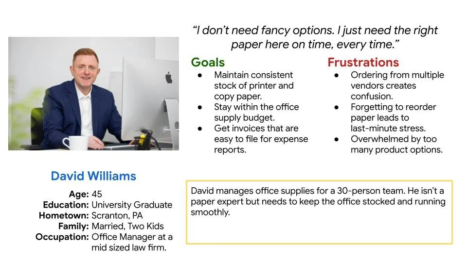 I began by exploring user expectations for online office supply purchasing — focusing on how customers search for products, compare prices, and reorder supplies efficiently.