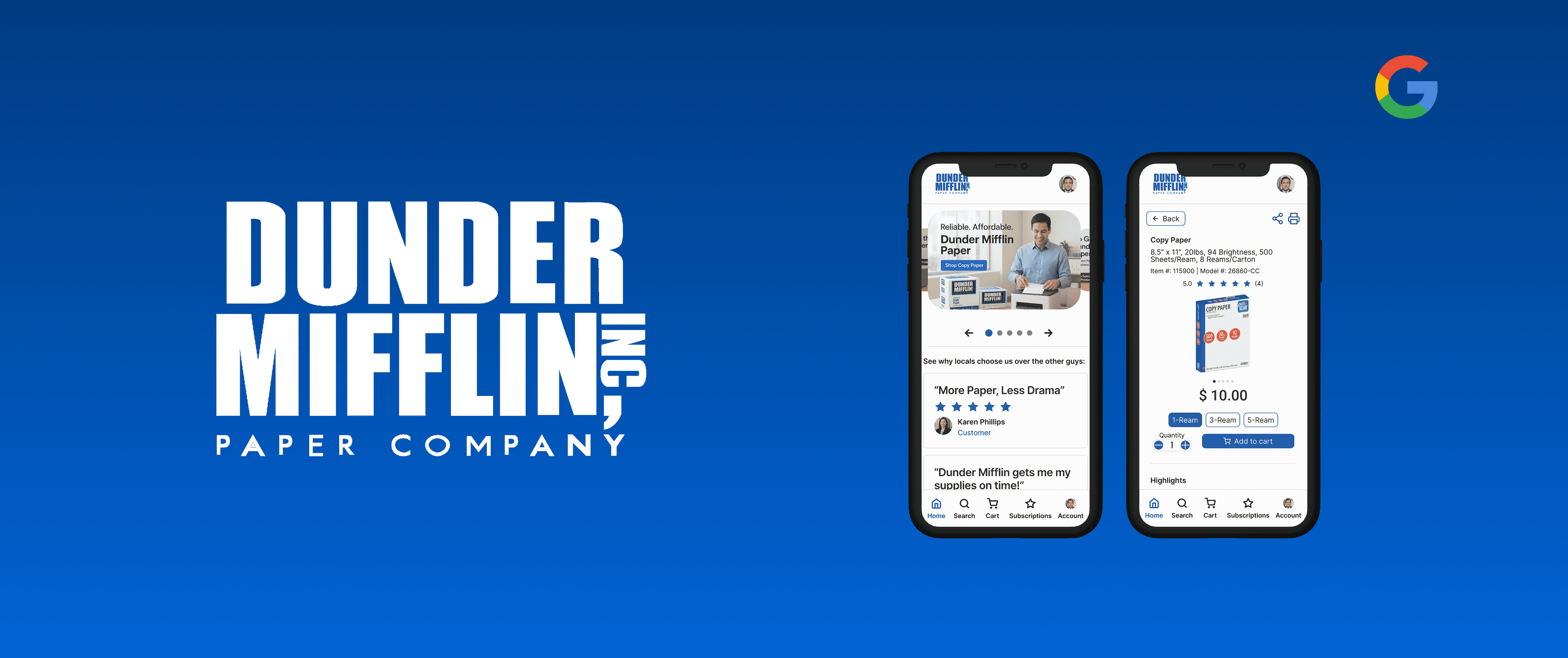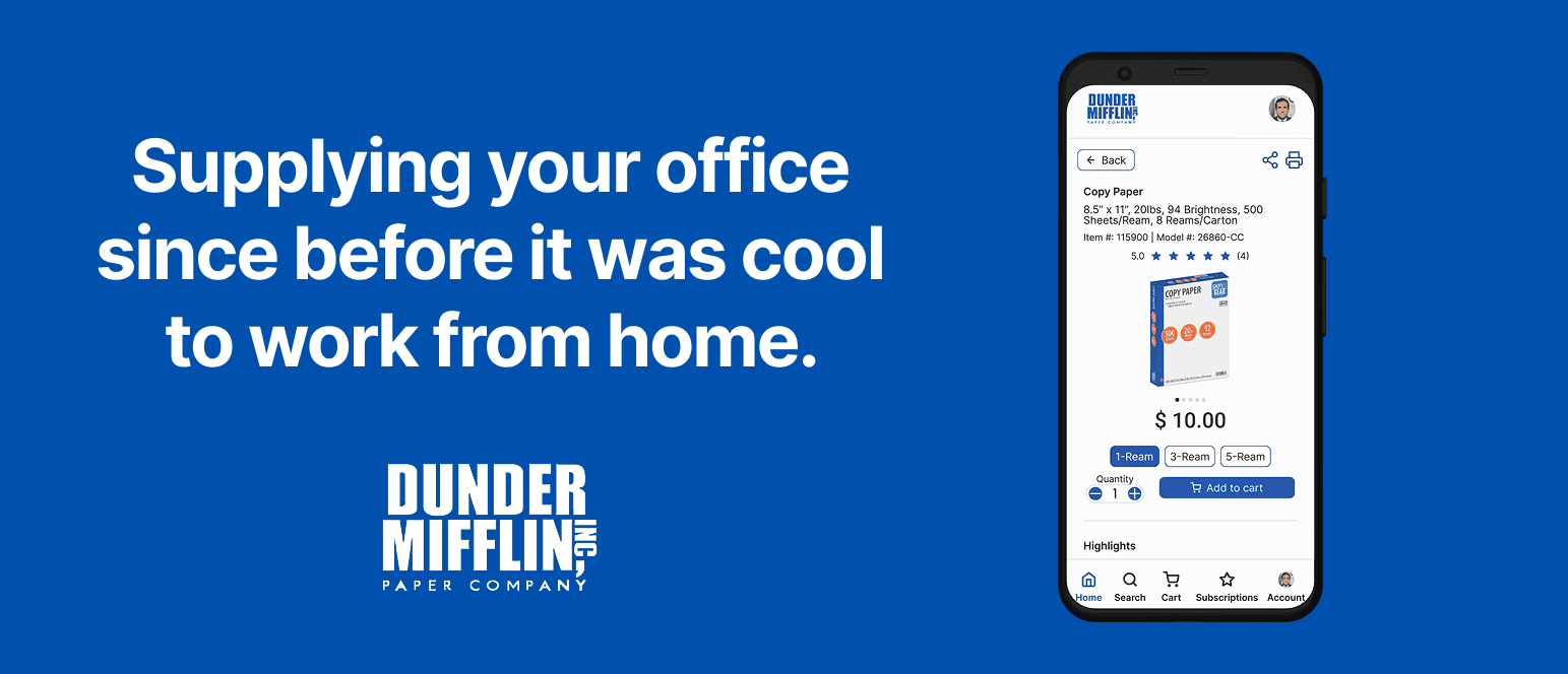 Design a modern e-commerce application to transform the fictional Dunder Mifflin legacy brand into a customer-centric digital supplier.