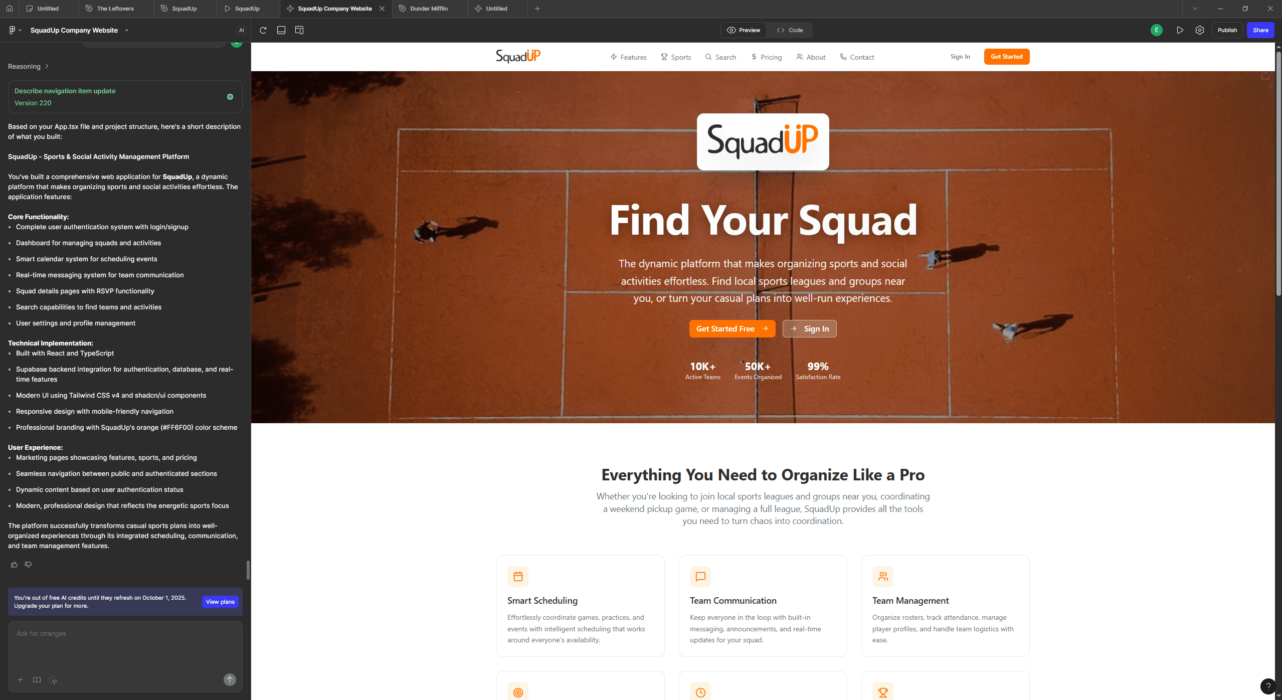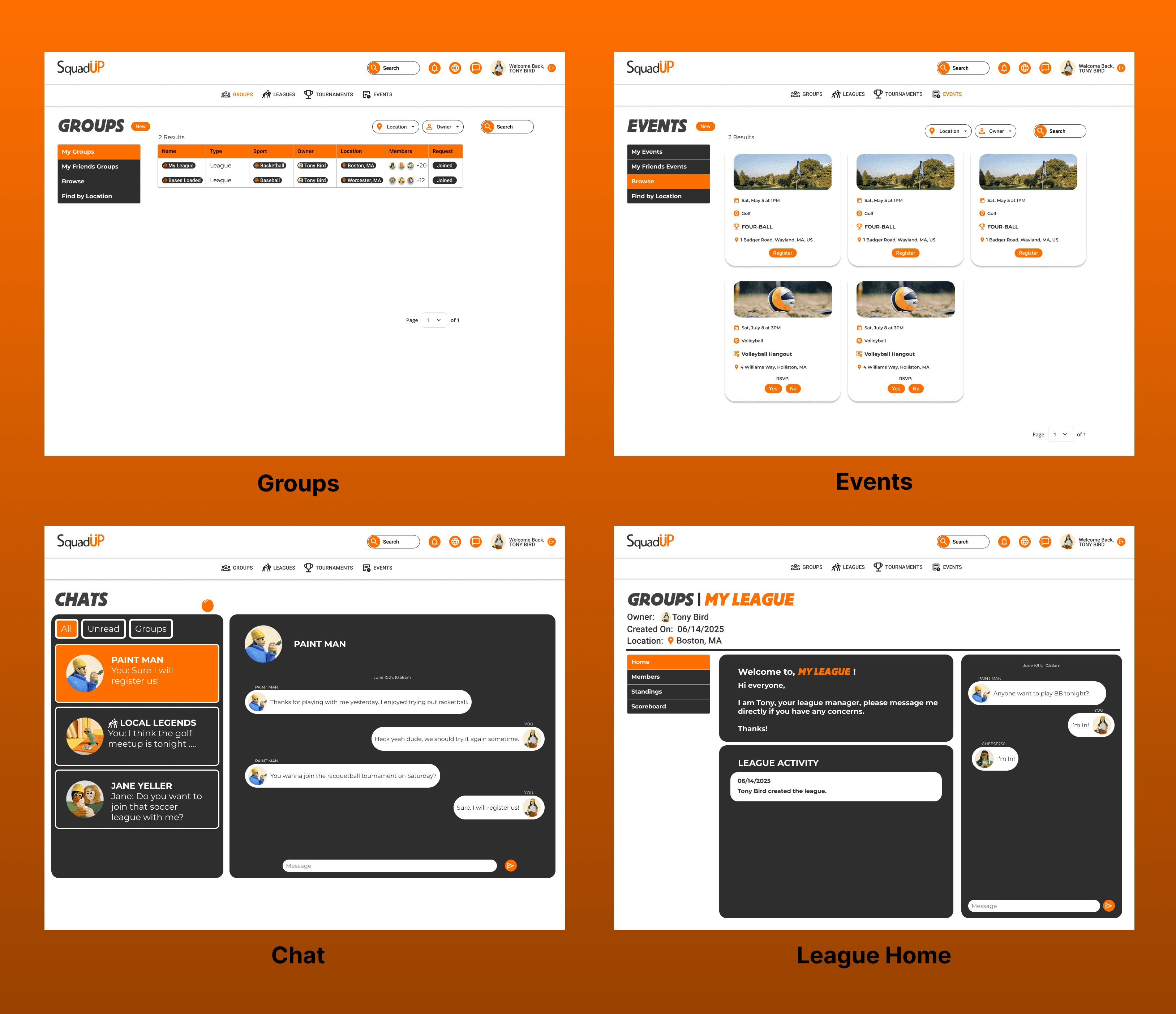 Design a dynamic business and management platform, SquadUp, to streamline organizing sports and social activities.