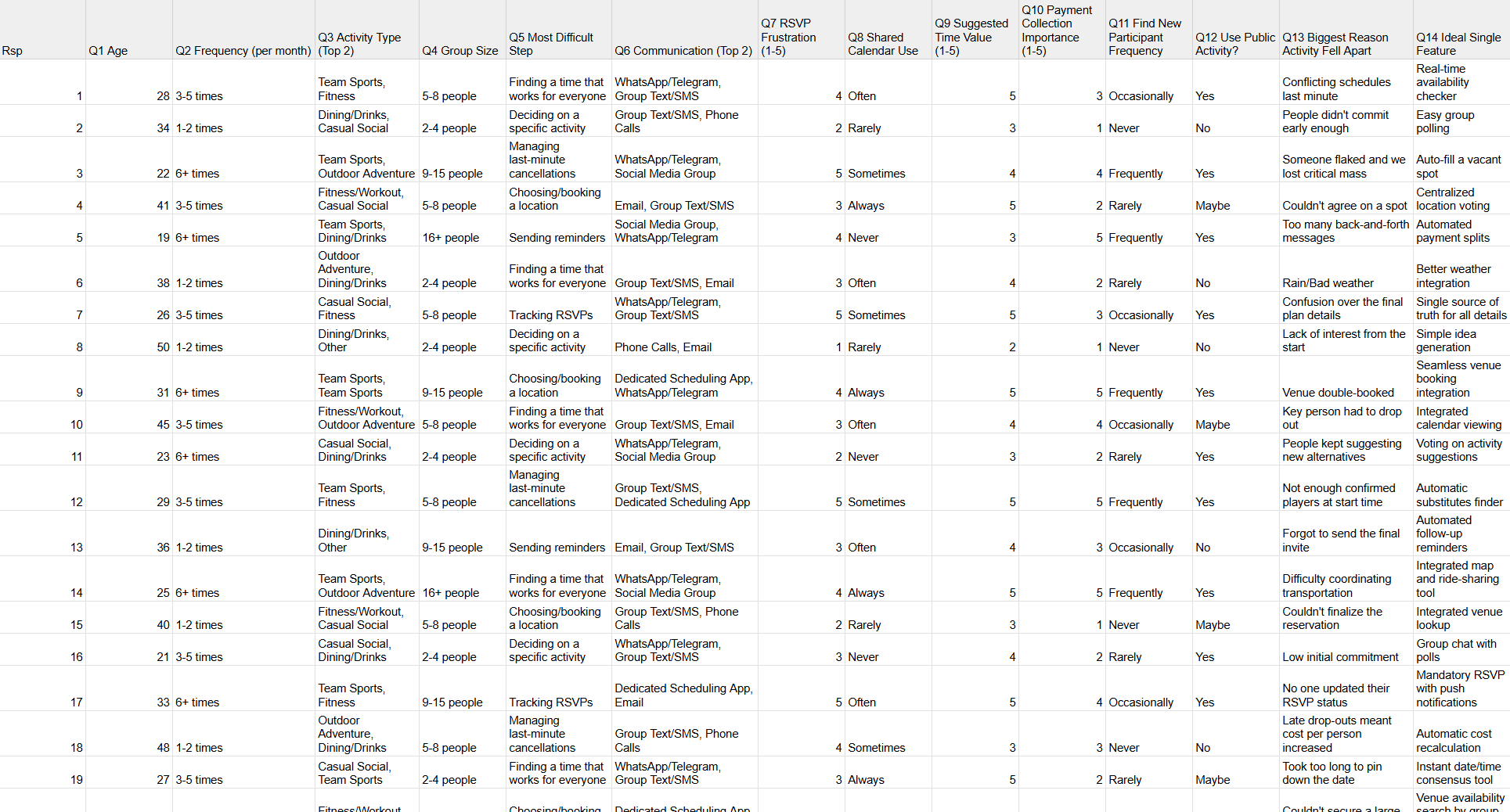 Conducted a survey of 50 participants to gather insights on social and sports activity planning behaviors.